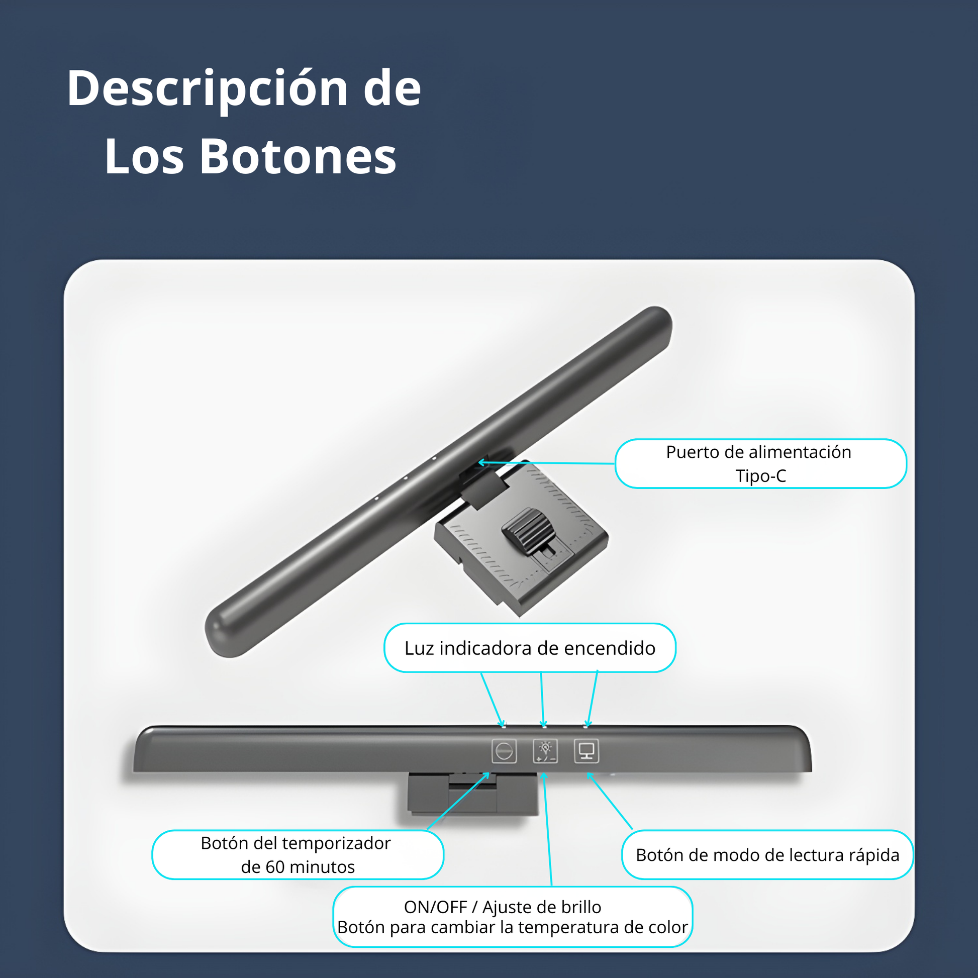 La LED Computer Monitor Light Bar está diseñada para ofrecer una iluminación cómoda, eficiente y sin reflejos, ideal para estudiar, leer o trabajar frente al ordenador durante largas horas.